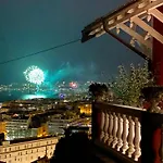 Situé à 3 km de L'Olivier Millénaire, cet établissement Villa Chalet Bellevue invite les clients à se détendre sur une terrasse.
